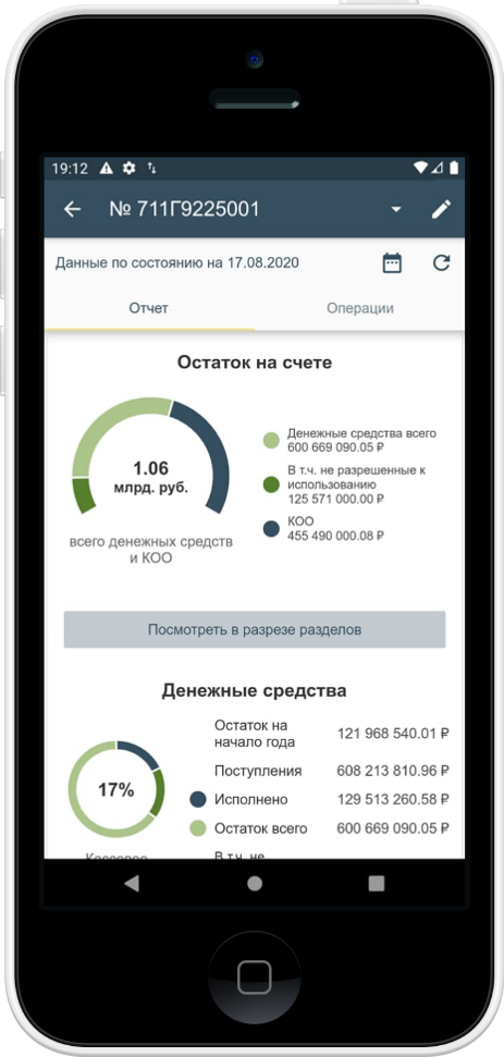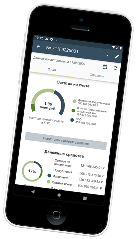 Это мобильное приложение на платформе ЕЗМП, обеспечивающее руководителям бюджетных организаций большое количество финансовых отчетов и онлайн-информацию о состоянии счетов